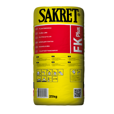 Sakret FK Plus on luotettava ja monipuolinen laastiseos, joka tarjoaa erinomaisen tartunnan, kestävyyden ja turvallisuuden laatoitusprojekteissa sekä sisä- että ulkotiloissa. Sen veden- ja kylmänkestävyys tekee siitä ihanteellisen valinnan vaativiin laatoituskohteisiin, ja sen paremmat tartunta-ominaisuudet ja vähemmän liukuminen lisäävät käyttömukavuutta ja turvallisuutta.